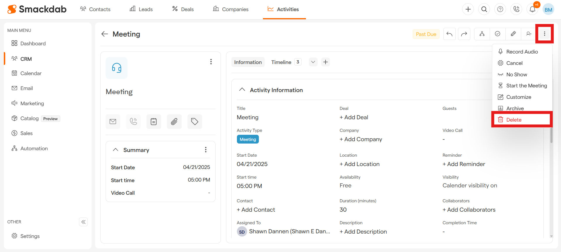 Need to remove an activity from Smackdab.ai?