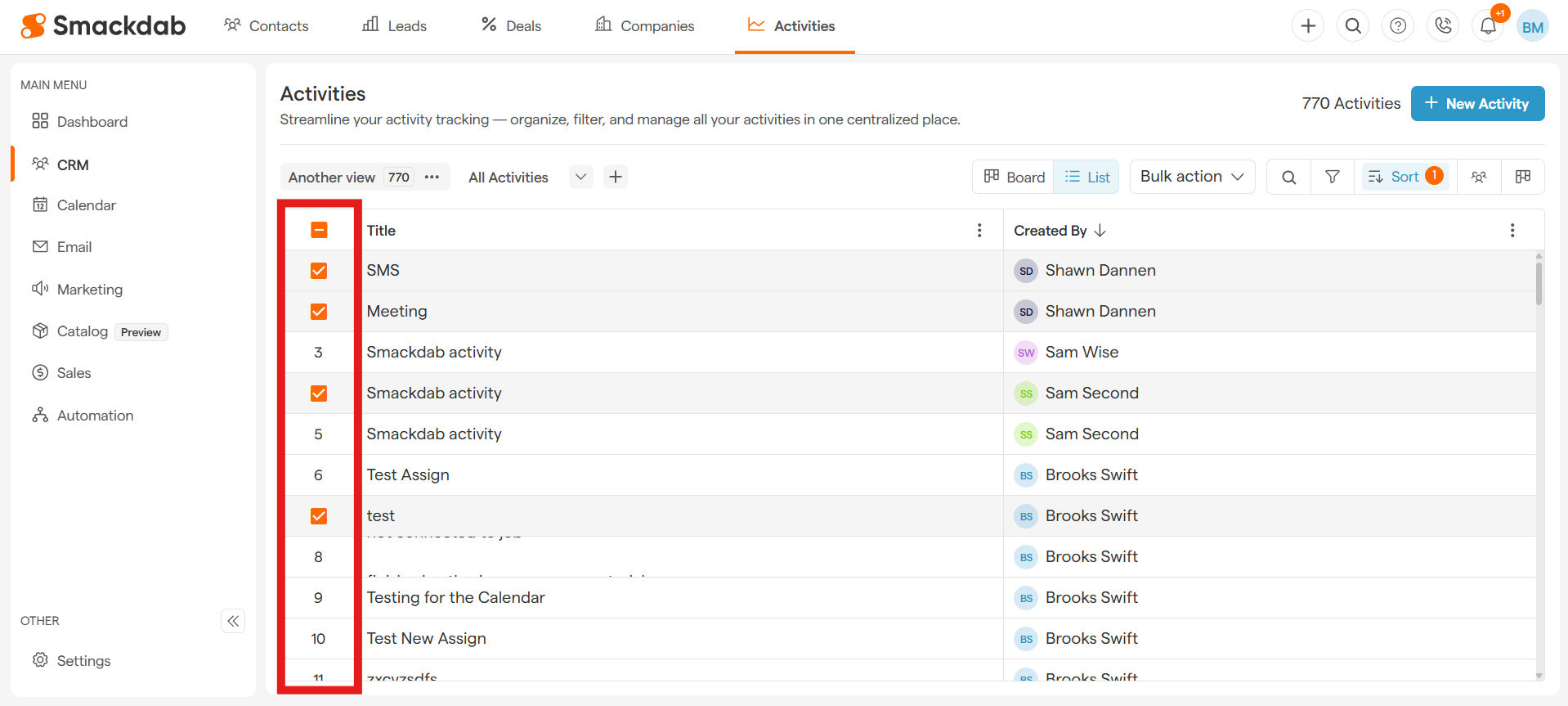 Deleting Multiple Activities in Smackdab.ai