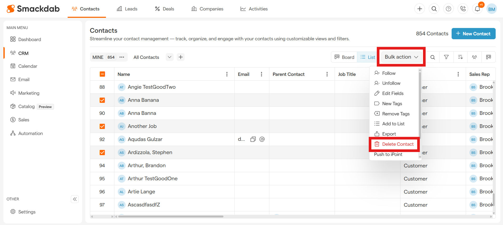 Need to remove multiple contacts at once? Smackdab makes it quick and effortless! Here’s how you can do it in just a few steps: