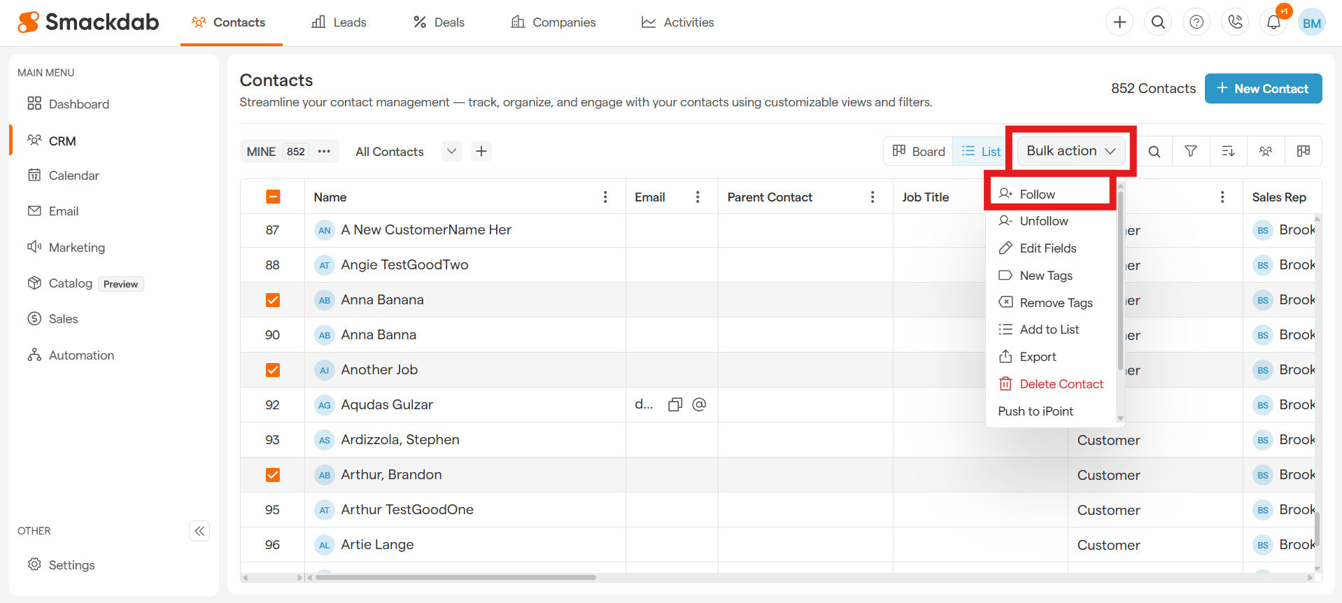 No problem! Simply follow the same process—select the contacts, click on the Bulk Action at the top-right, and this time, hit Unfollow.