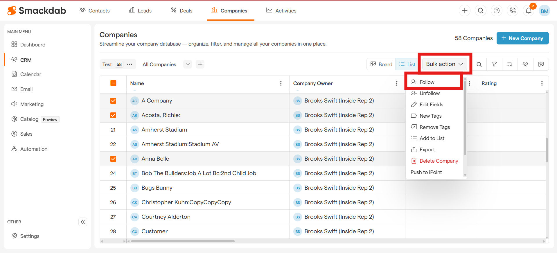 No problem! Simply follow the same process—select the companies, click on the Bulk Action button at the top, and this time, hit Unfollow.