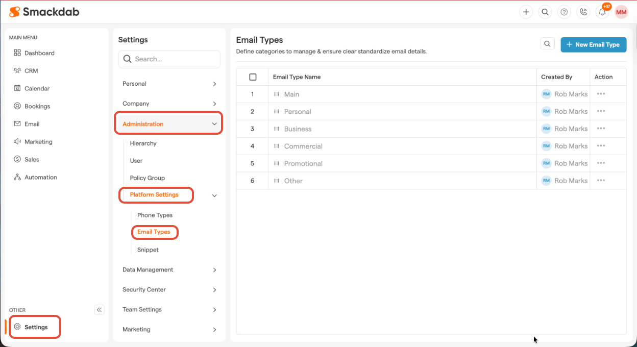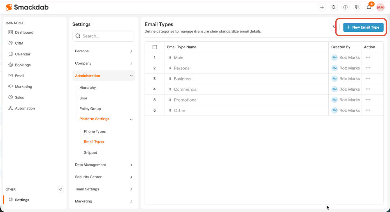 Managing email types in Smackdab CRM helps keep your communication organized and efficient.