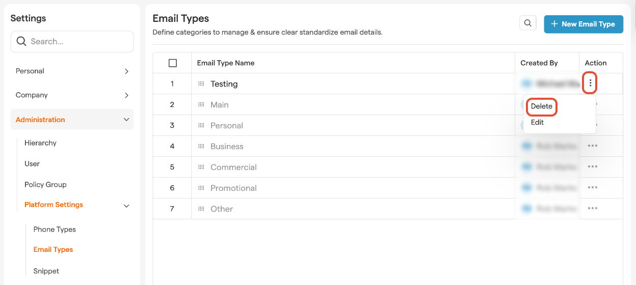 If you no longer need a specific email type, you can remove it to keep your email types organized. Here’s how you can do it: