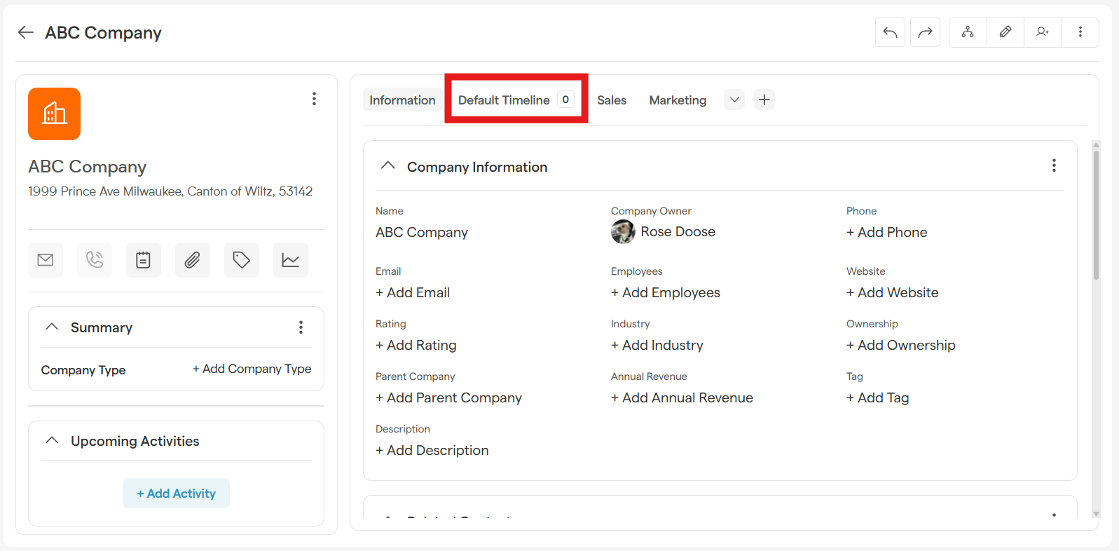 From the CRM module in your main menu, select Deals, Contacts, or Companies from the top menu. Then select a record by clicking on the record's name.