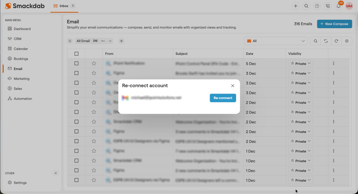 Smackdab.ai makes it easy to restore access in just a few clicks, so you can continue sending, receiving, and managing emails without any hassle.