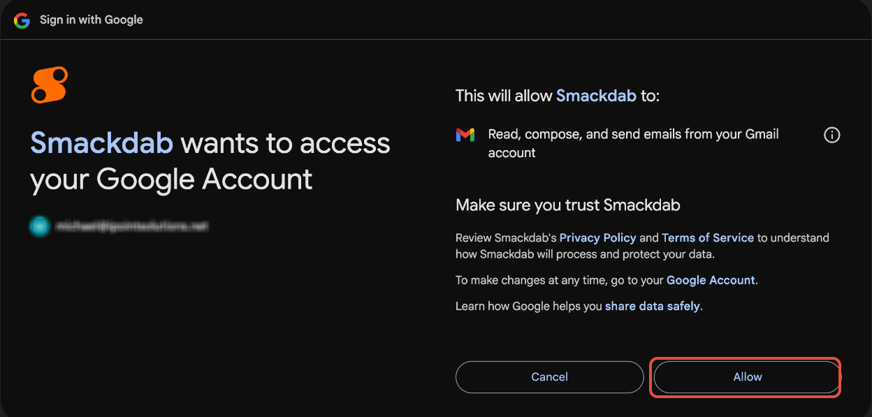 Need to connect your email to Smackdab.ai?