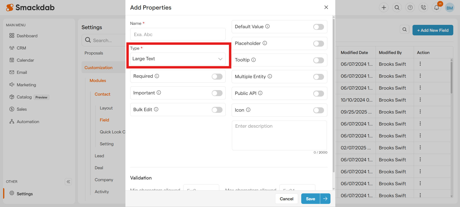 Adding a Large Text (Text Area) field is simple and helps you capture extensive information in your CRM records.